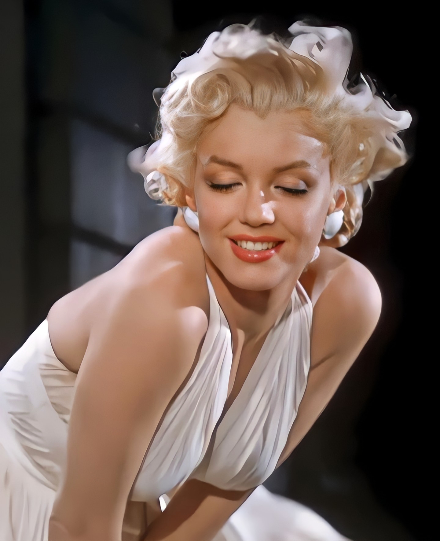 Η φούστα του λευκού εξώπλατου που φορά “Το κορίτσι» σηκώνεται αποκαλύπτοντας τα πόδια της ως ψηλά στους μηρούς ενώ εκείνη γελά με την αφέλεια μικρού παιδιού, καθώς στέκεται στην σχάρα κάτω από την οποία περνάει ο υπόγειος σιδηρόδρομος και περιμένει το επόμενο τρένο για την φυσήξει και πάλι το αεράκι.